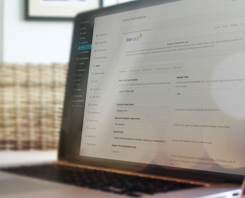As you can see you can either set the slide animation to fade or to slide. You can also manually choose the slideshow image size from a predefined array of sizes that work well with the theme
